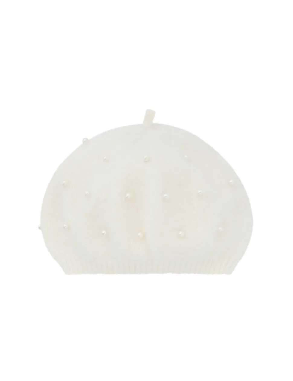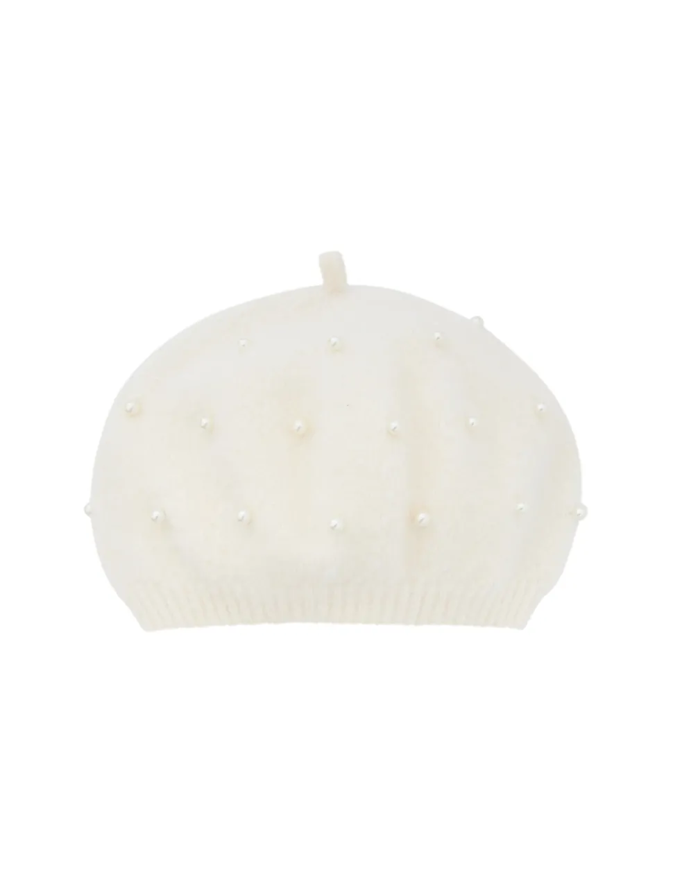 The Crush Beaded Beret in Ivory/Pearl from our Resort 2025 Collection, Crush. A knit beret featuring pearl detailing throughout and a ribbed band.