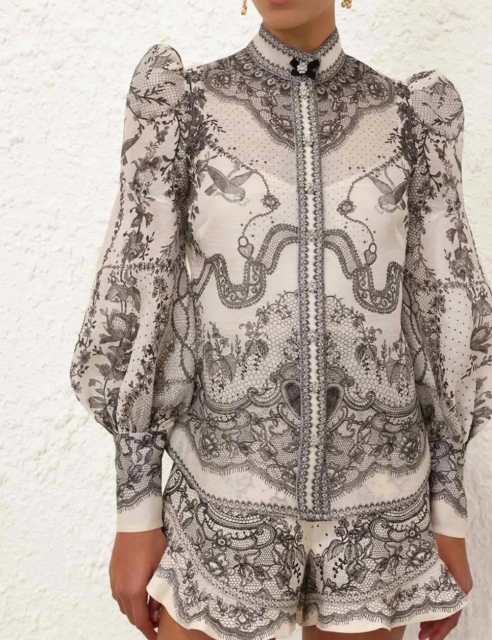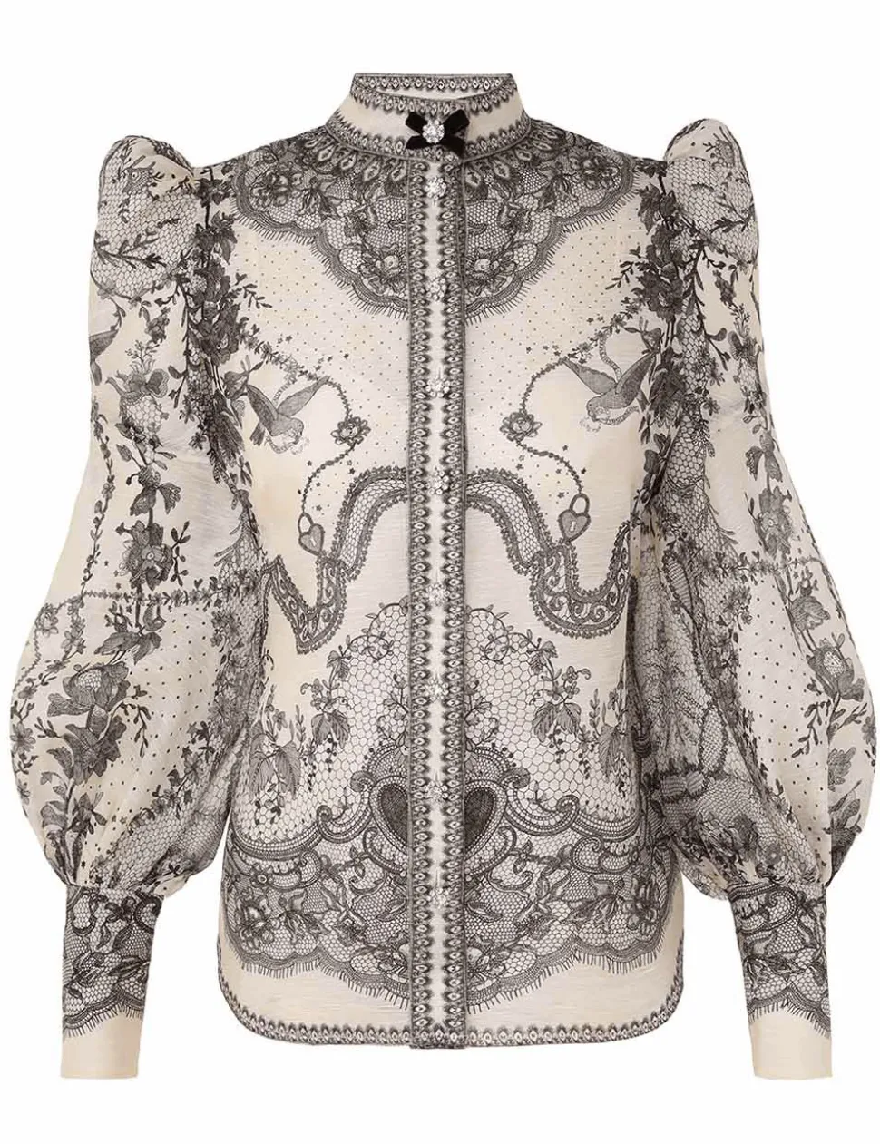 The Crush Body Shirt in Ivory Locket from our Resort 2025 Collection, Crush. A silk linen organza shirt featuring a classic shirt silhouette, blouson sleeves and buttons down the centre front.