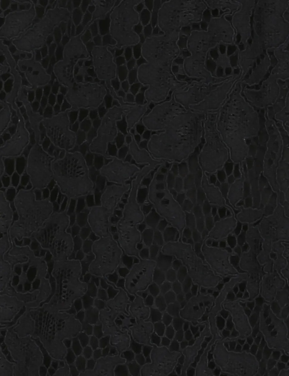 The Eden Lace Frill Mini Dress in Black/Cream from our Fall 2024 Collection, In Illustration. A cotton frill mini dress featuring a contrast yoke, gathered lace trim neckline and cuffs.