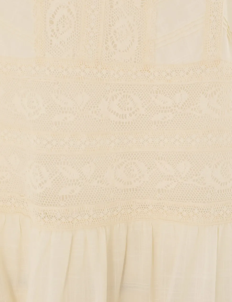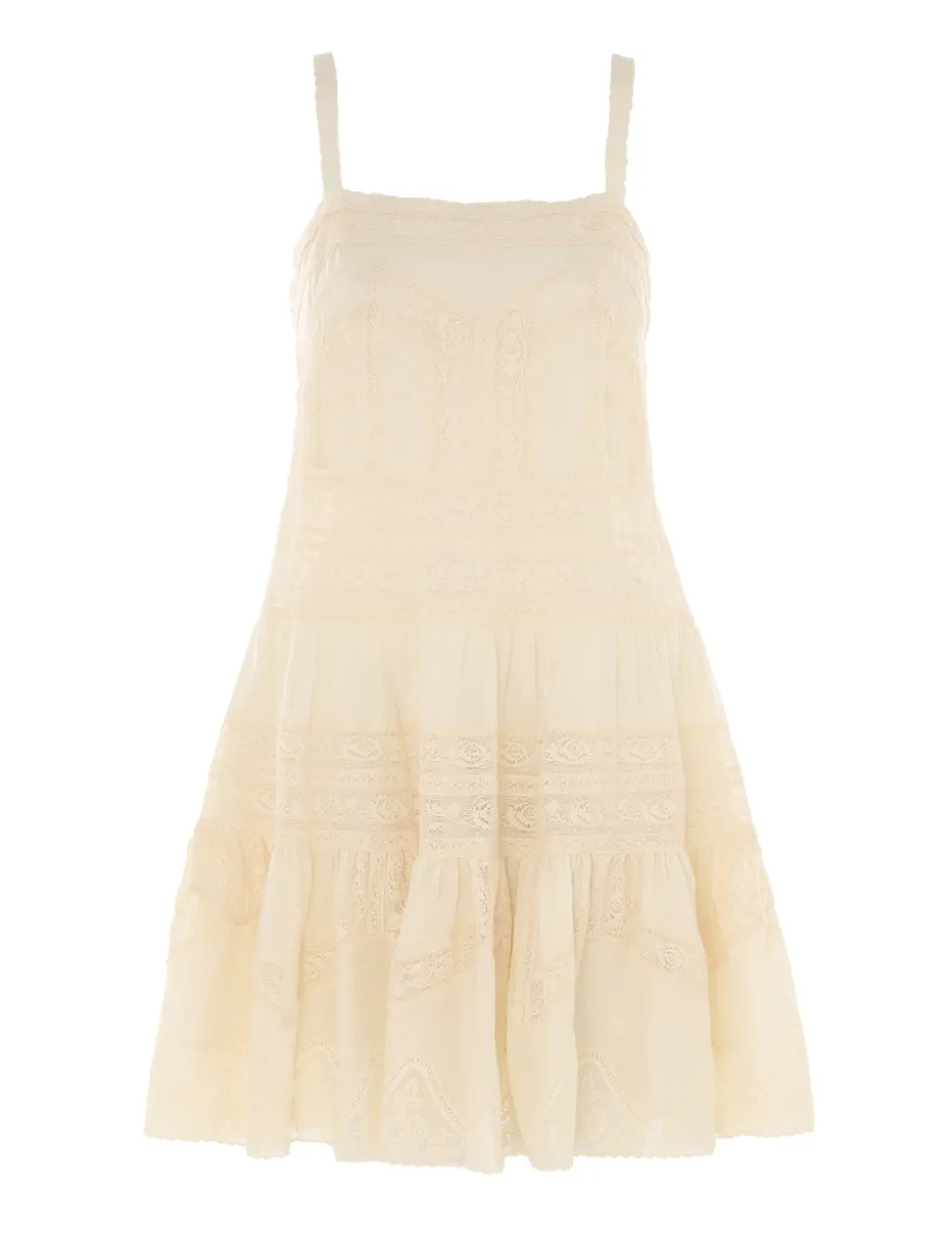 The Halliday Lace Trim Short Dress in Cream from our Summer Swim 2024 Collection. A cotton mini dress featuring a pintuck lace trim bodice and lace trims throughout.