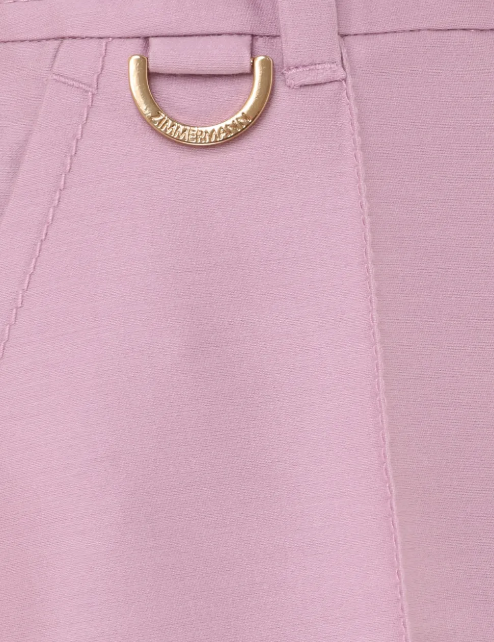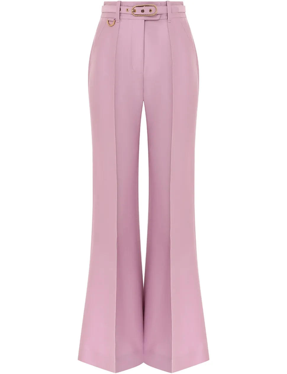 The Illustration Wide Leg Pant in Lilac from our Fall 2024 Collection, In Illustration. A wool blend pant featuring a high waist, wide flare silhouette and centre front pintucks through the legs with pockets throughout.