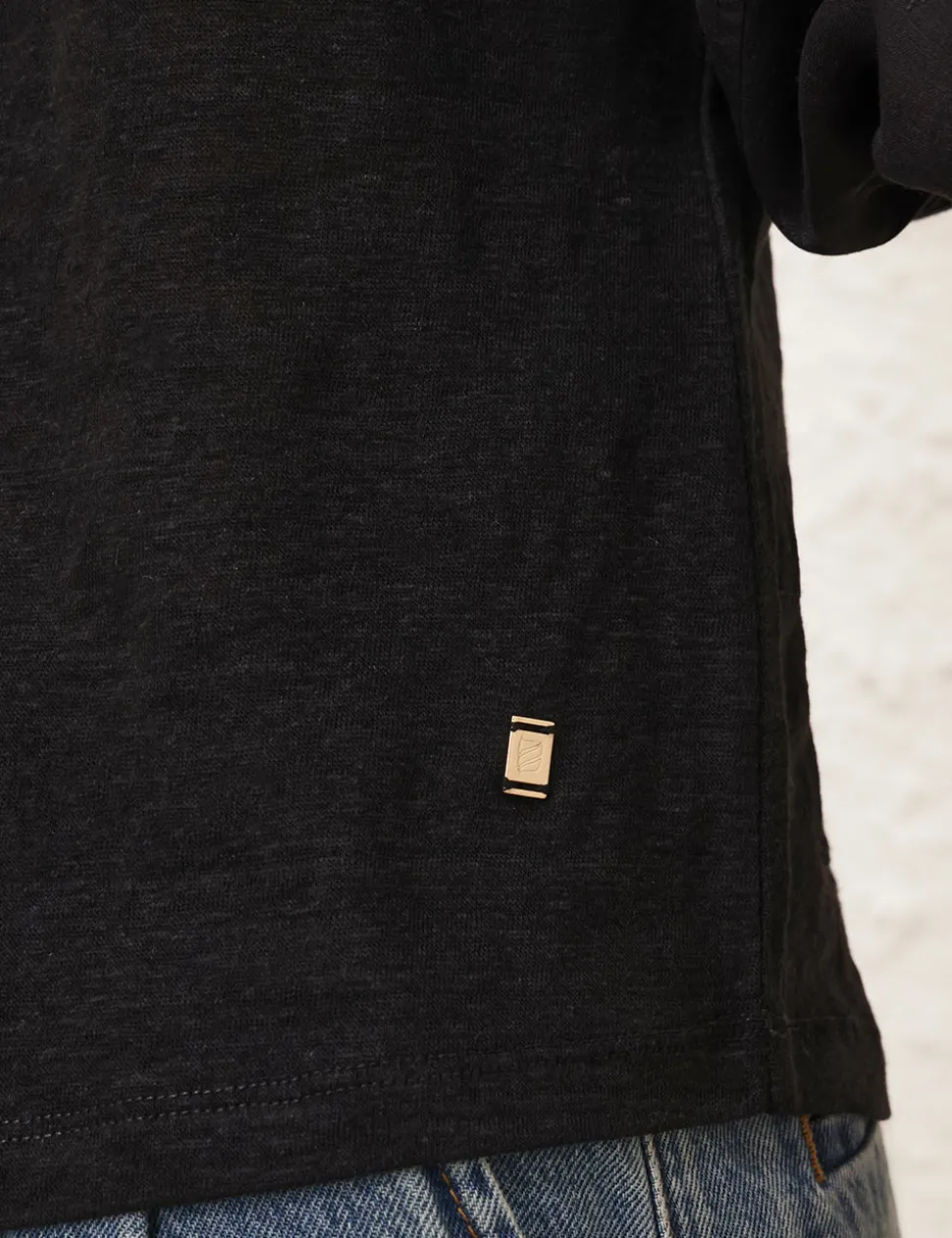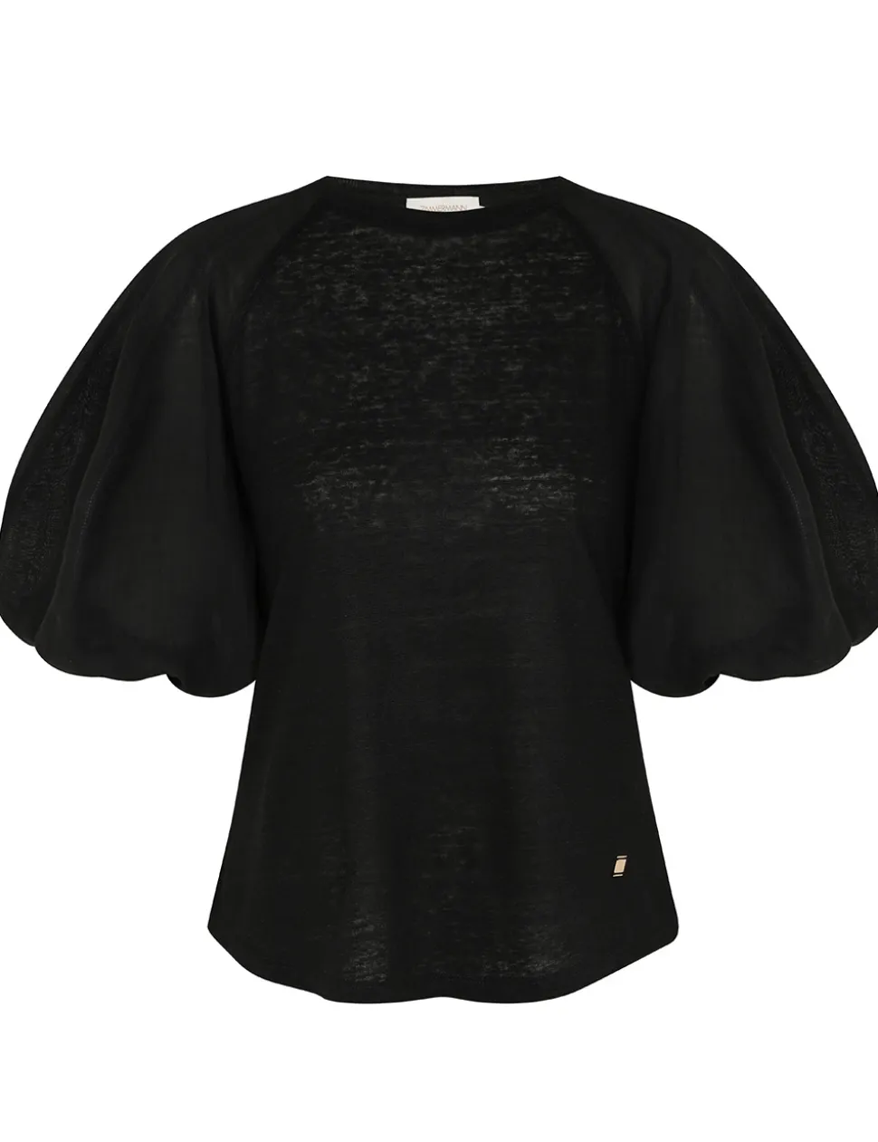 The Lantern Sleeve Tee in Black from our Fall 2024 Collection, In Illustration. A linen tee featuring short blouson sleeves.