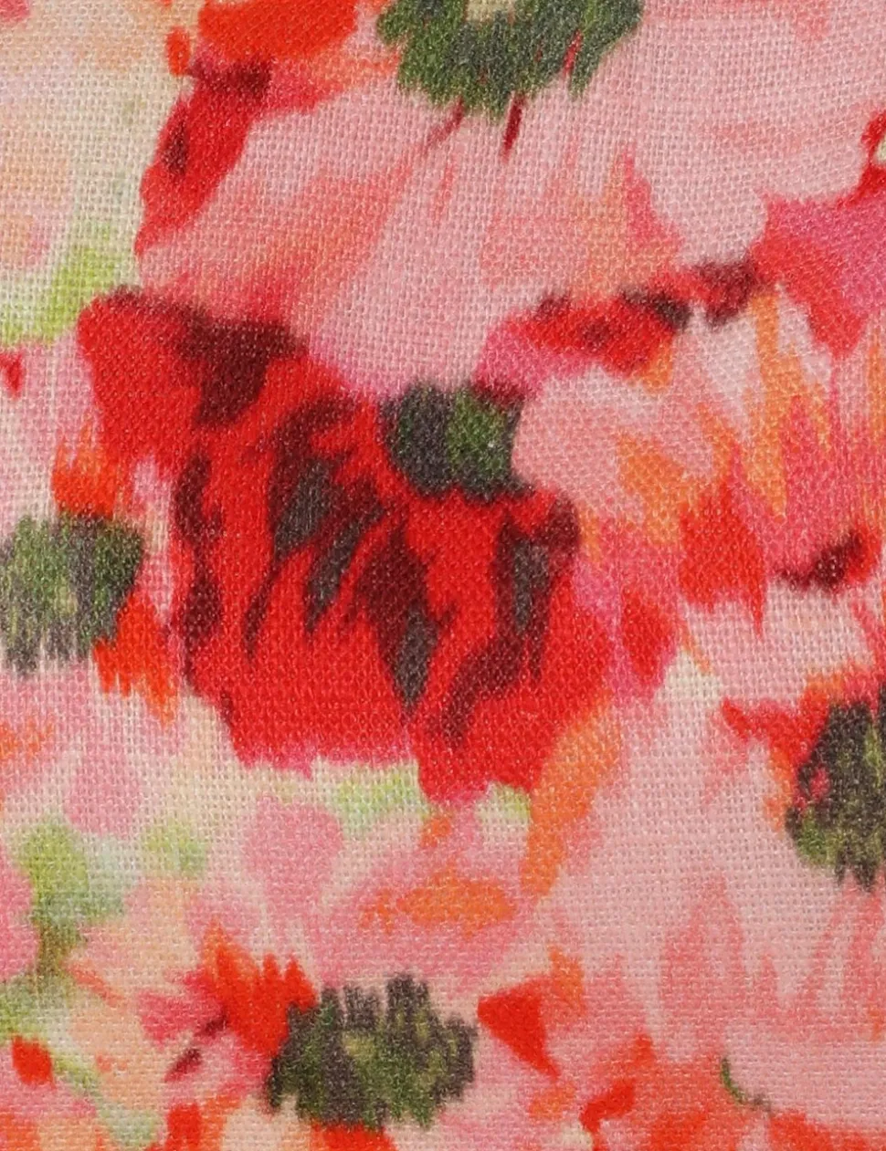The Lightburst Cut Out Mini Dress in Red Floral from our Summer Swim 2024 Collection. A linen mini dress featuring short blouson sleeves with elasticated cuff and a self tie back.
