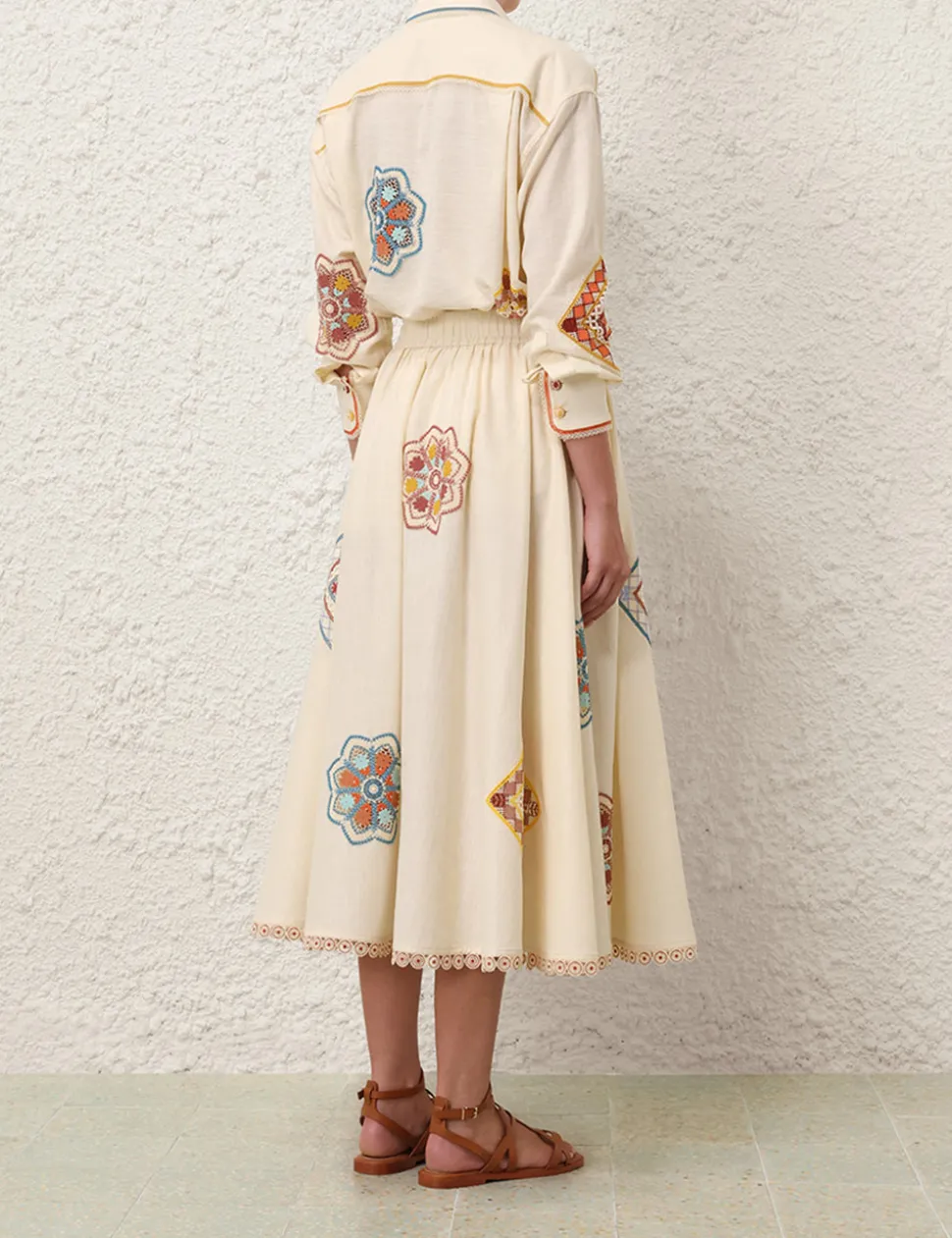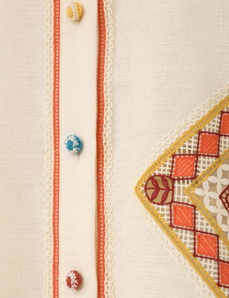 The Ottie Doily Shirt in Cream Multi from our Summer Swim 2024 Collection. A cotton long sleeve shirt featuring a doily edge trim.