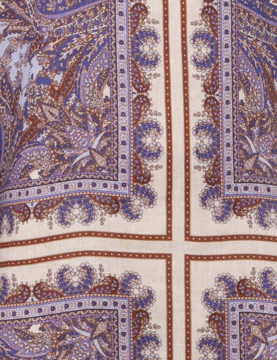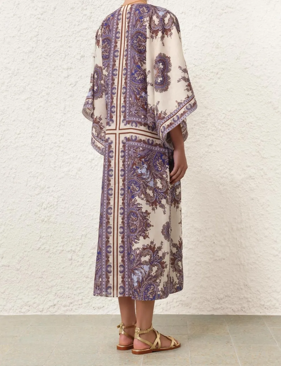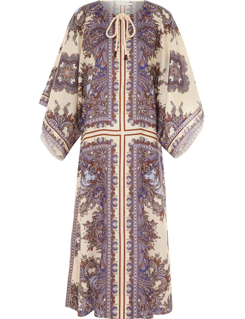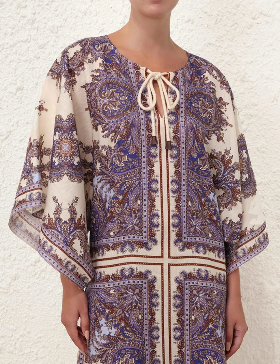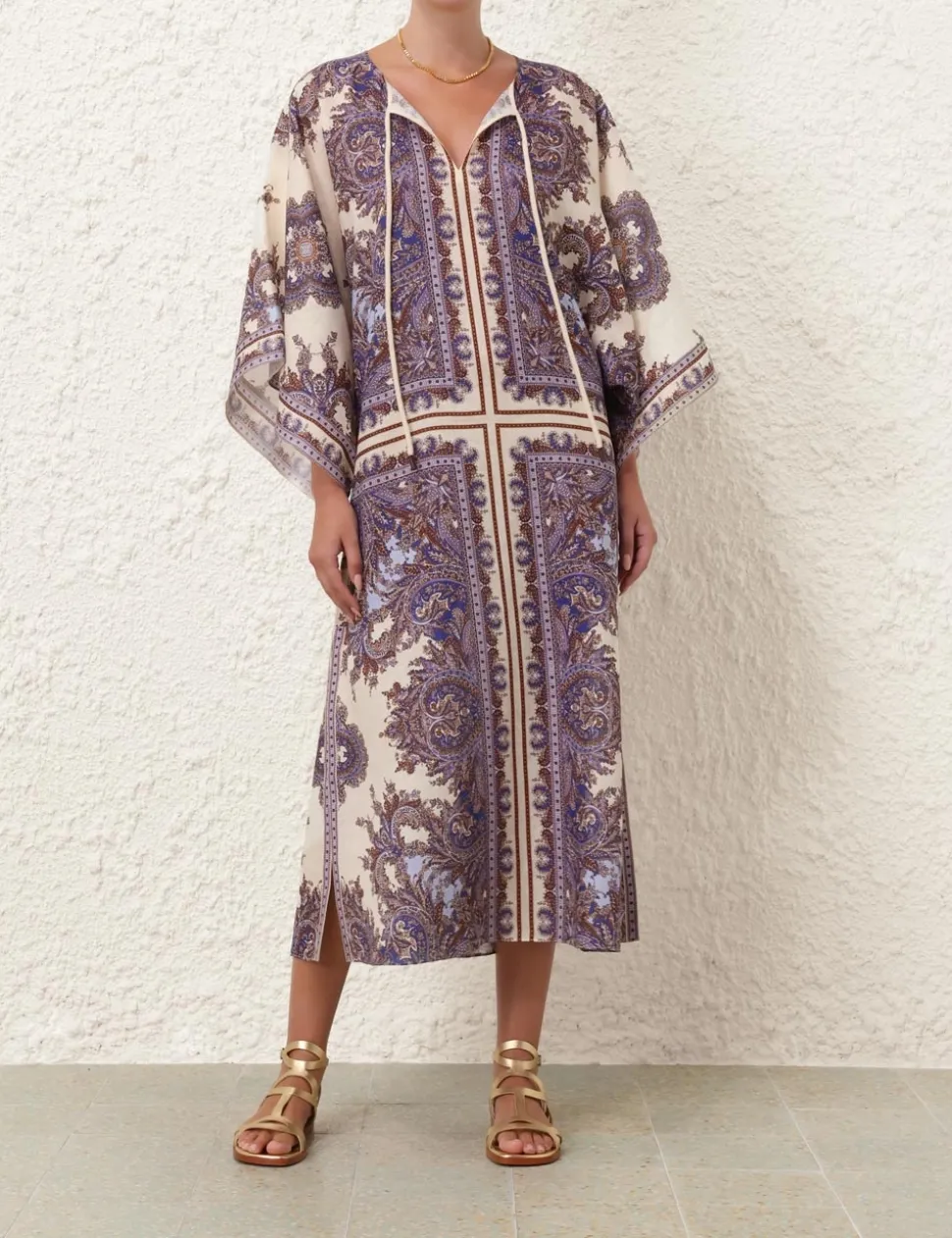 The Ottie Kaftan Midi Dress in Purple Paisley from our Summer Swim 2024 Collection. A relaxed style kaftan dress constructed from a sloppy linen.