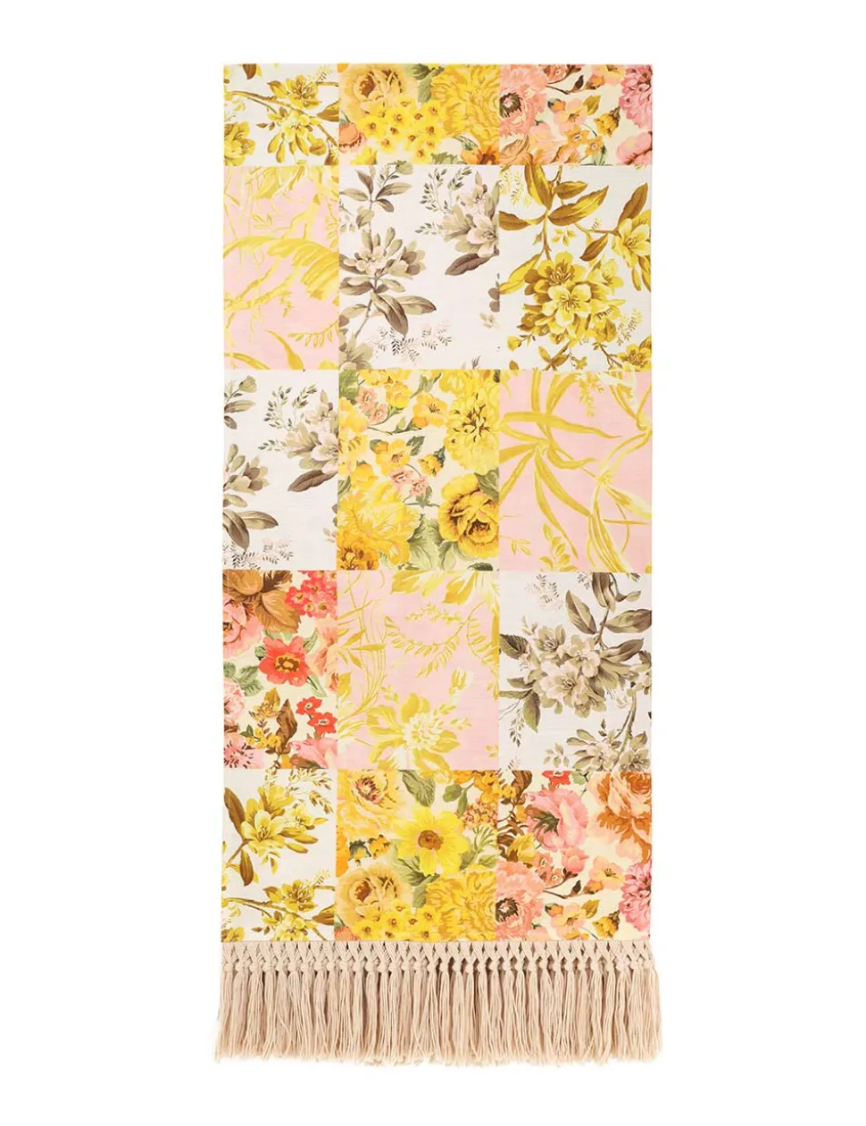 The Printed Cotton Towel in Patch Floral from our Summer Swim 2024 Collection. A large textured beach towel featuring a placement print and cotton tassel trims.