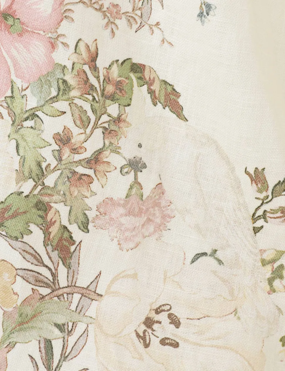 The Waverly Plunge Mini Dress in Cream Floral from our Summer Swim 2024 Collection. A linen mini dress featuring a plunging neckline and bow detail, finished with a full mini skirt.