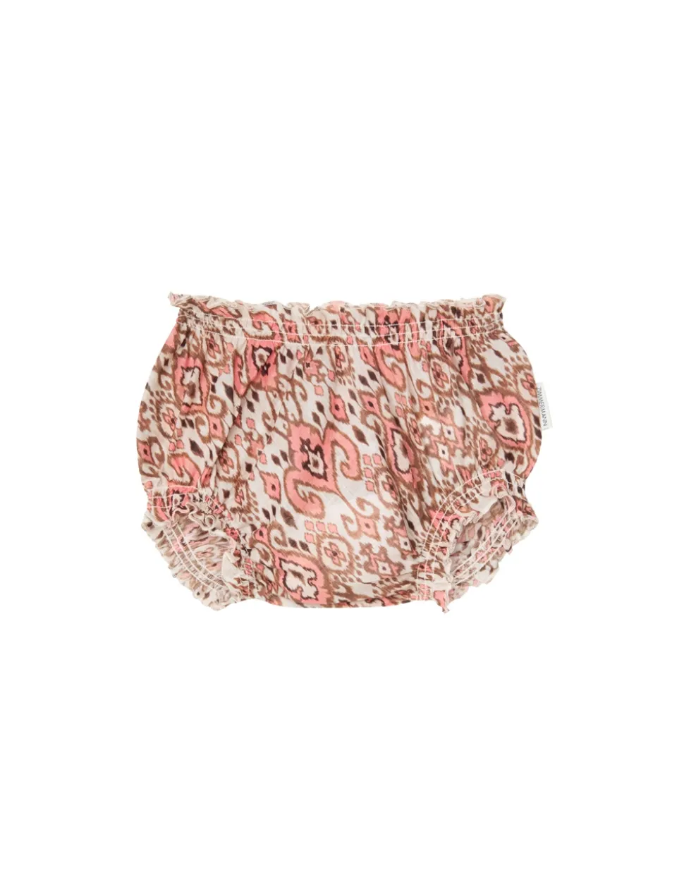 The Wylie Bloomer in Peach Ikat from our Resort Swim 2025 Kids Collection. A cotton bloomer with elastic trims and frilled edges.
