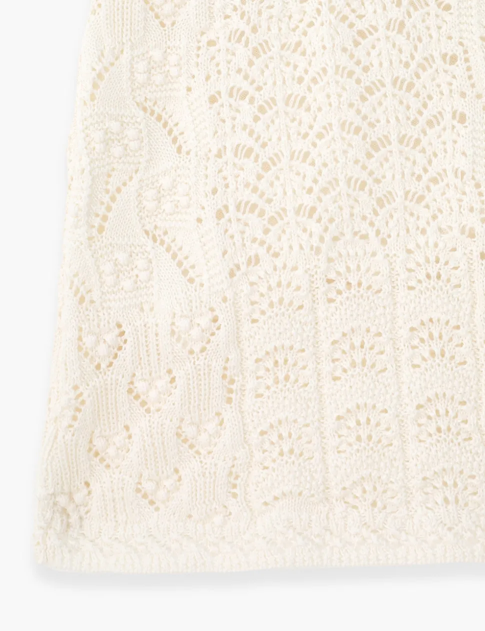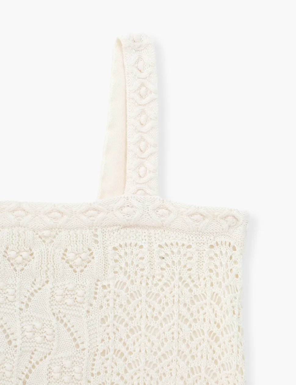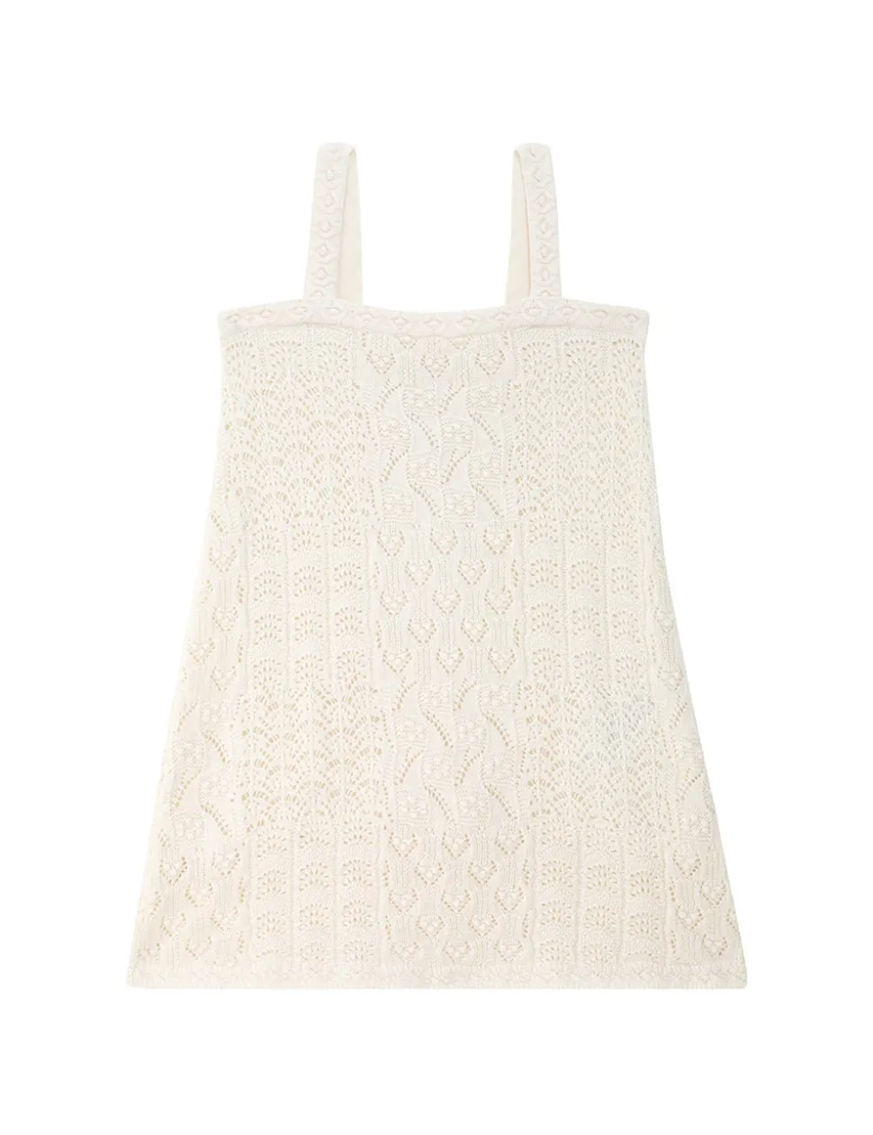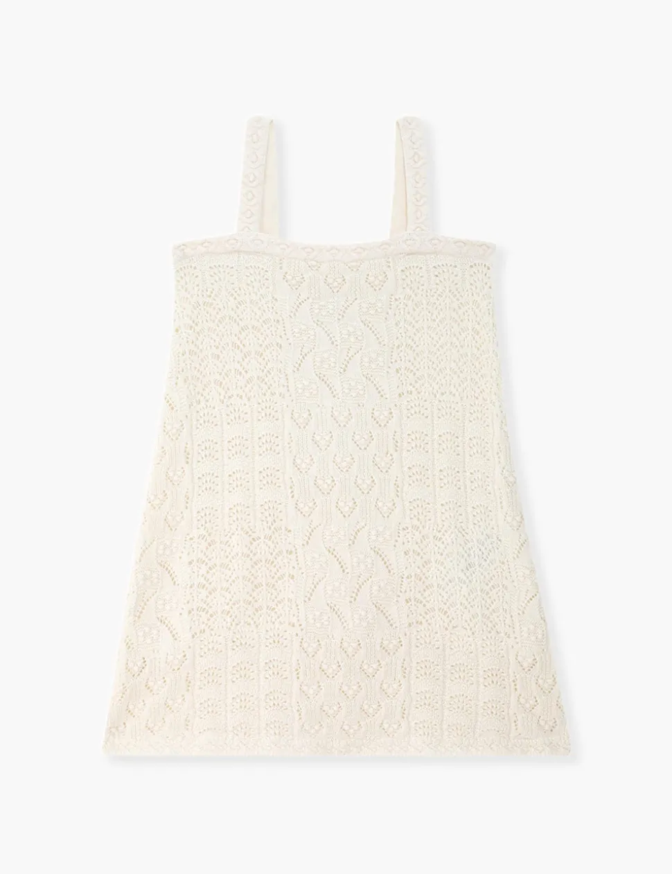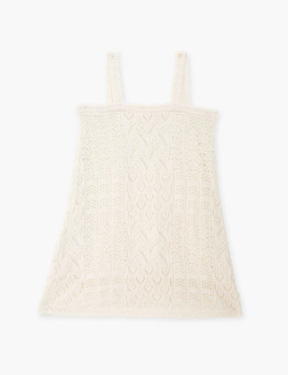 The Wylie Patchwork Knit Dress in Ivory from our Resort Swim 2025 Kids Collection. A cotton knit dress with fixed straps.