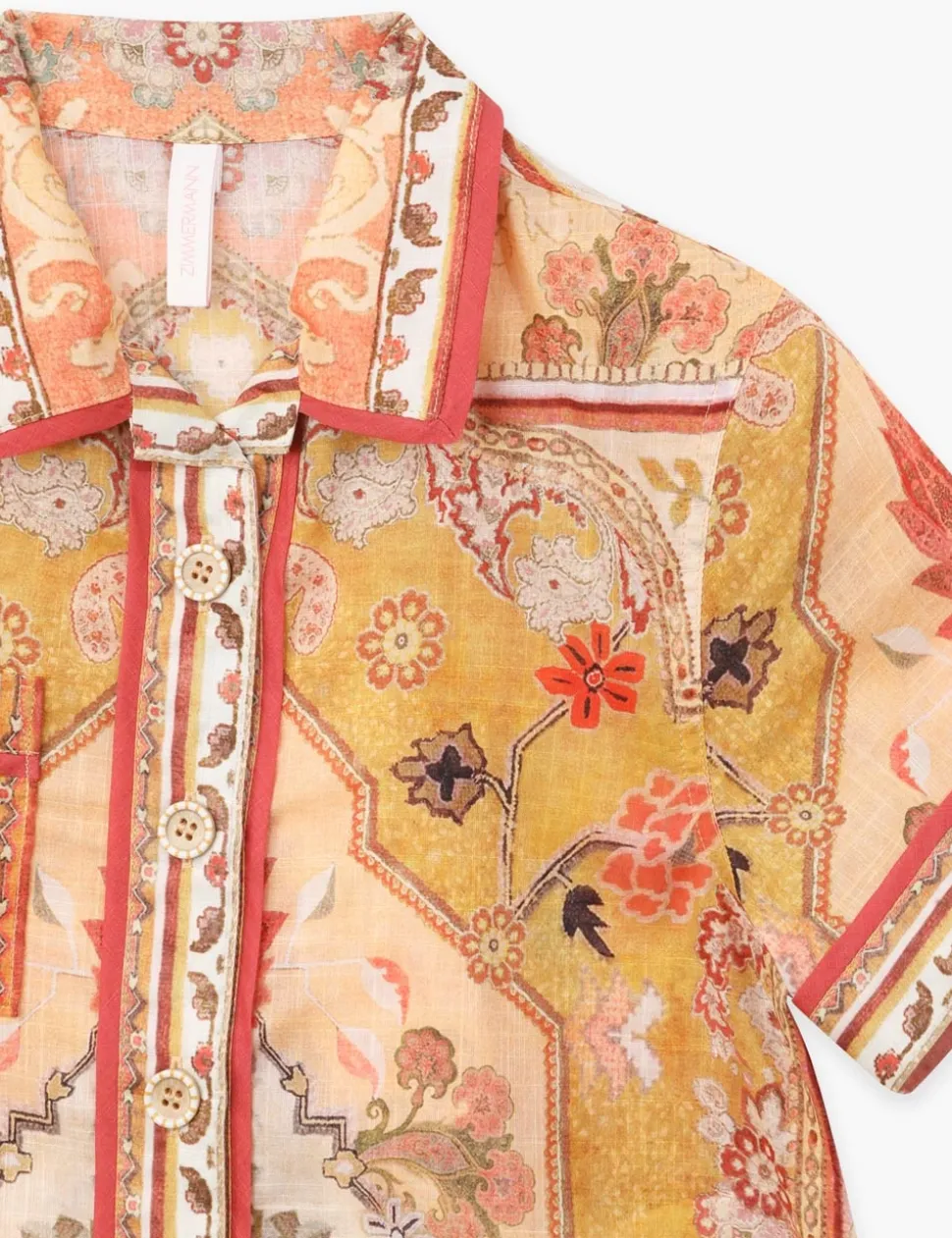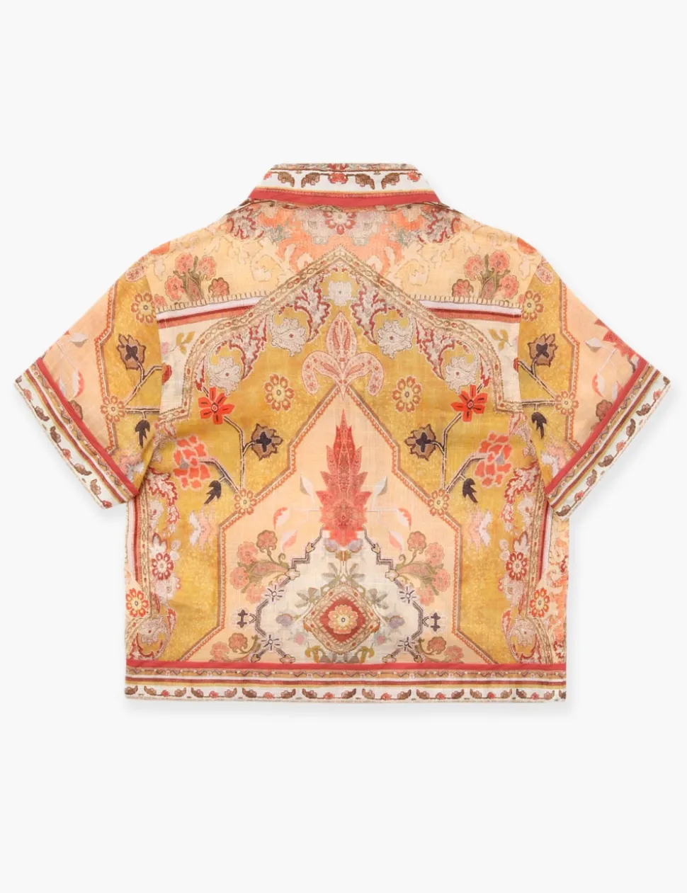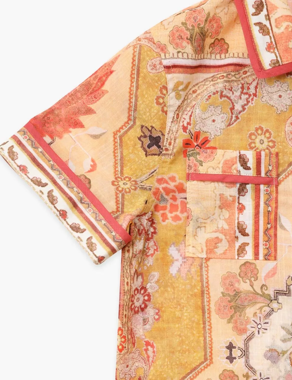 The Wylie Pocket Shirt in Mustard Multi from our Resort Swim 2025 Kids Collection. A cotton shirt featuring a classic collar and buttons down the centre front opening.