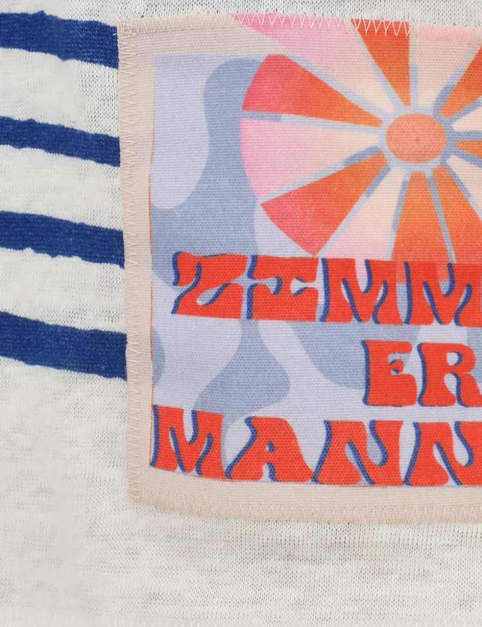 The Wylie Stripe Tee in Cobalt/Ivory from our Resort Swim 2025 Collection. A linen tee featuring blue stripe, buttons on shoulder and ZIMMERMANN patch.