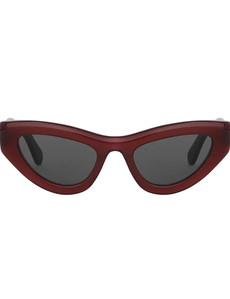 The Zimmermann Jay Cat Eye in Wine from our Fall 2024 Collection, In Illustration. An acetate frame featuring a classic cat eye shape and a solid tinted lenses.