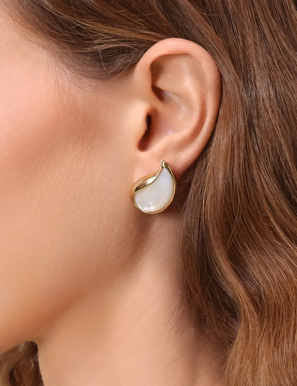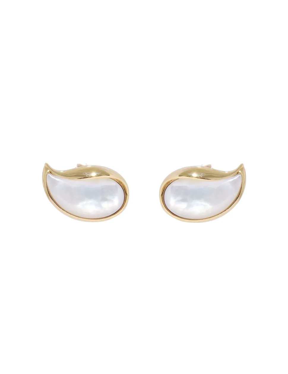 The Zimmermann Nova Pearl Studs in Gold/Pearl from our Resort 2025 Collection, Crush. A gold plated statement pearl earring featuring stud post back.