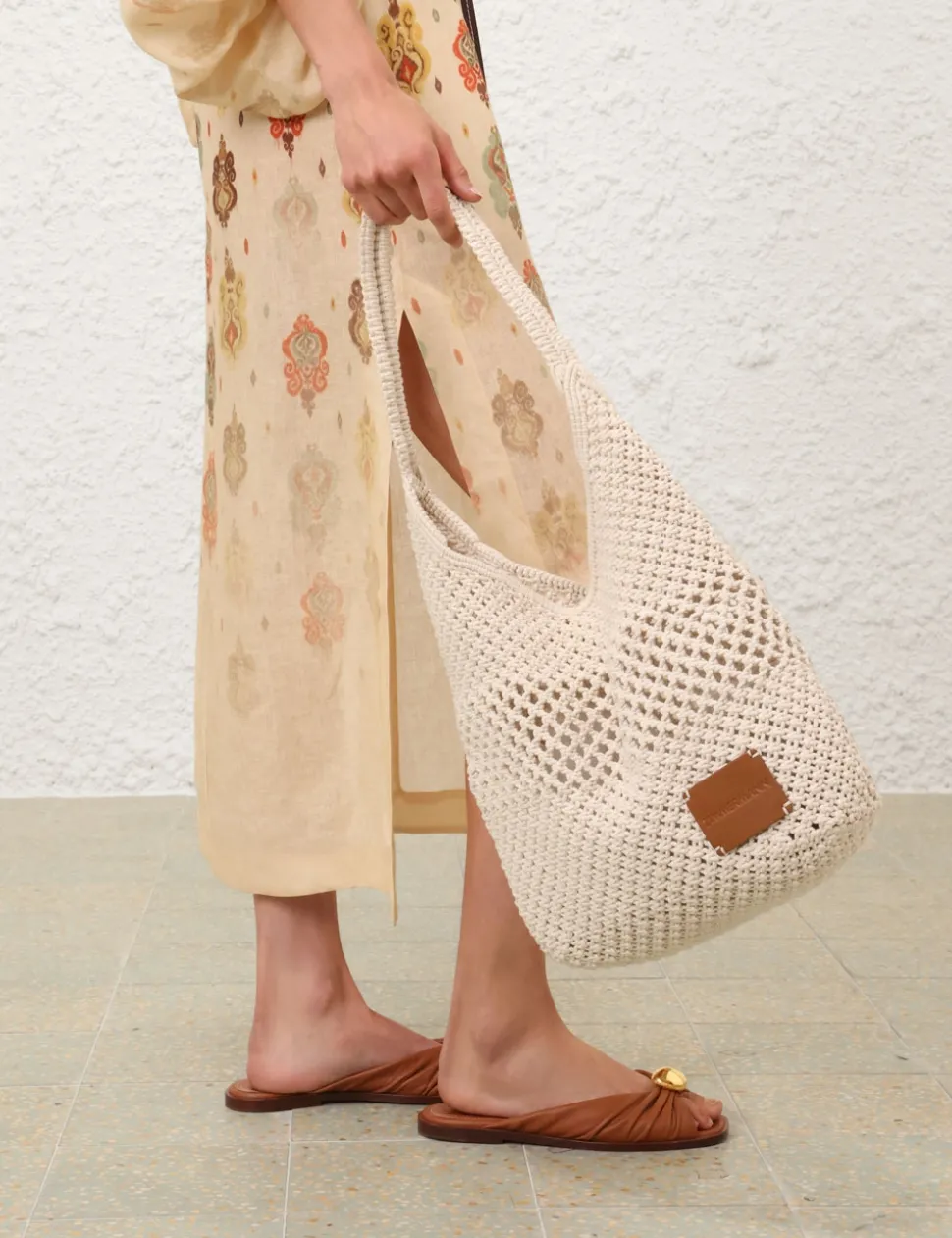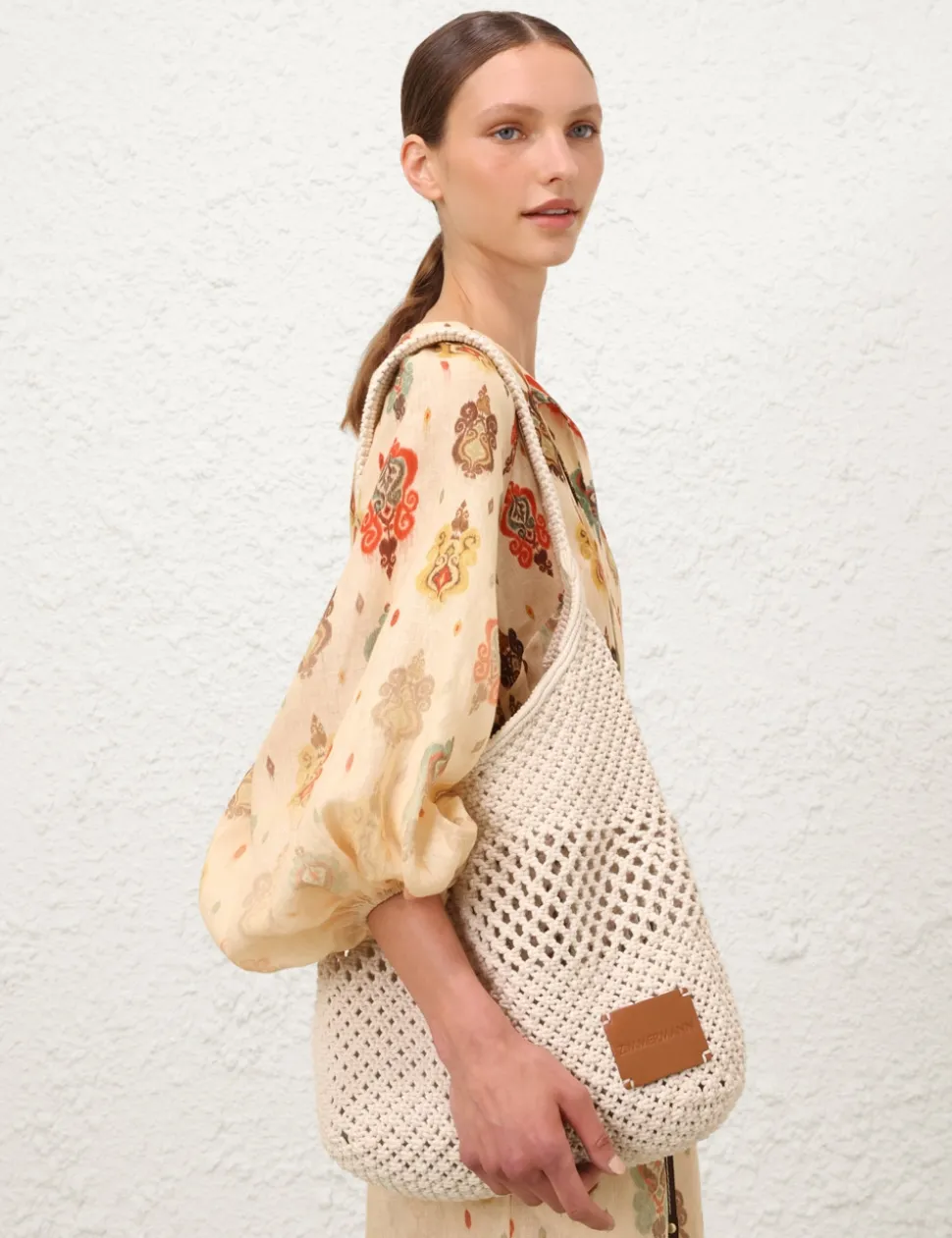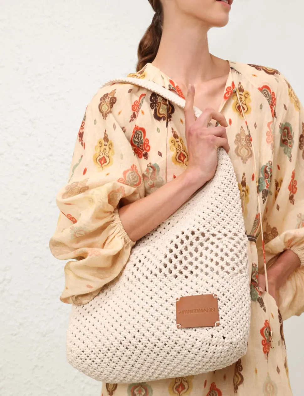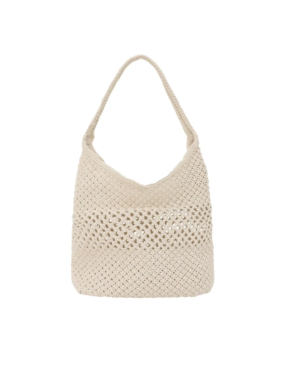 The Crochet Hobo in Off White from our Resort Swim 2025 Collection. A hobo shoulder bag with a fixed short handle and a crochet design.