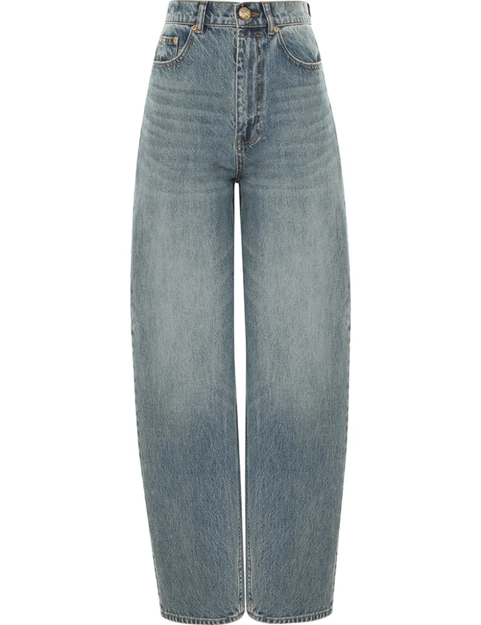 The Illustration Barrel Jean in Neptune from our Fall 2024 Collection, In Illustration. A denim barrel jean featuring a wide, straight leg silhouette, finished with custom topstitching throughout.