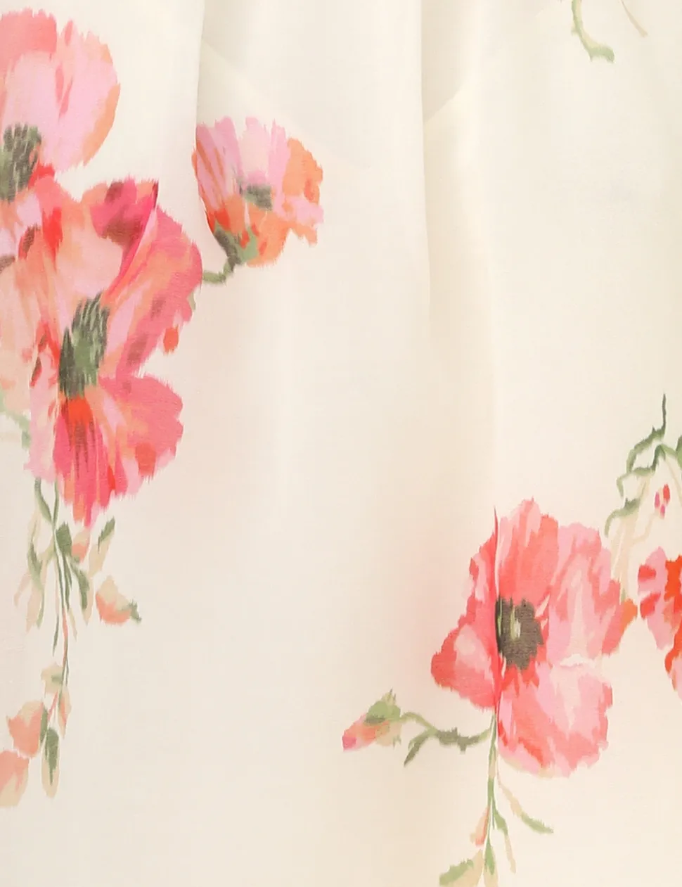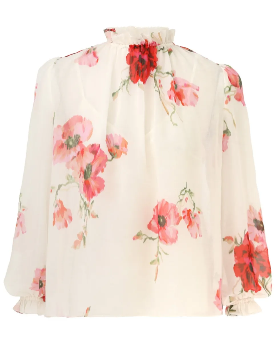 The Lightburst Billow Blouse in Cream/Red Floralfrom our Summer Swim 2024 Collection. A cotton blouse featuring an elasticated neckline and cuffs with ruffles.