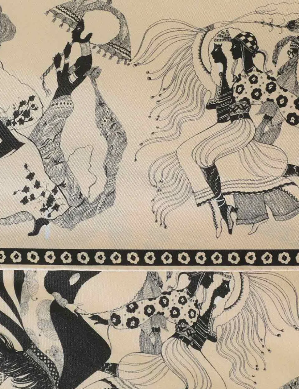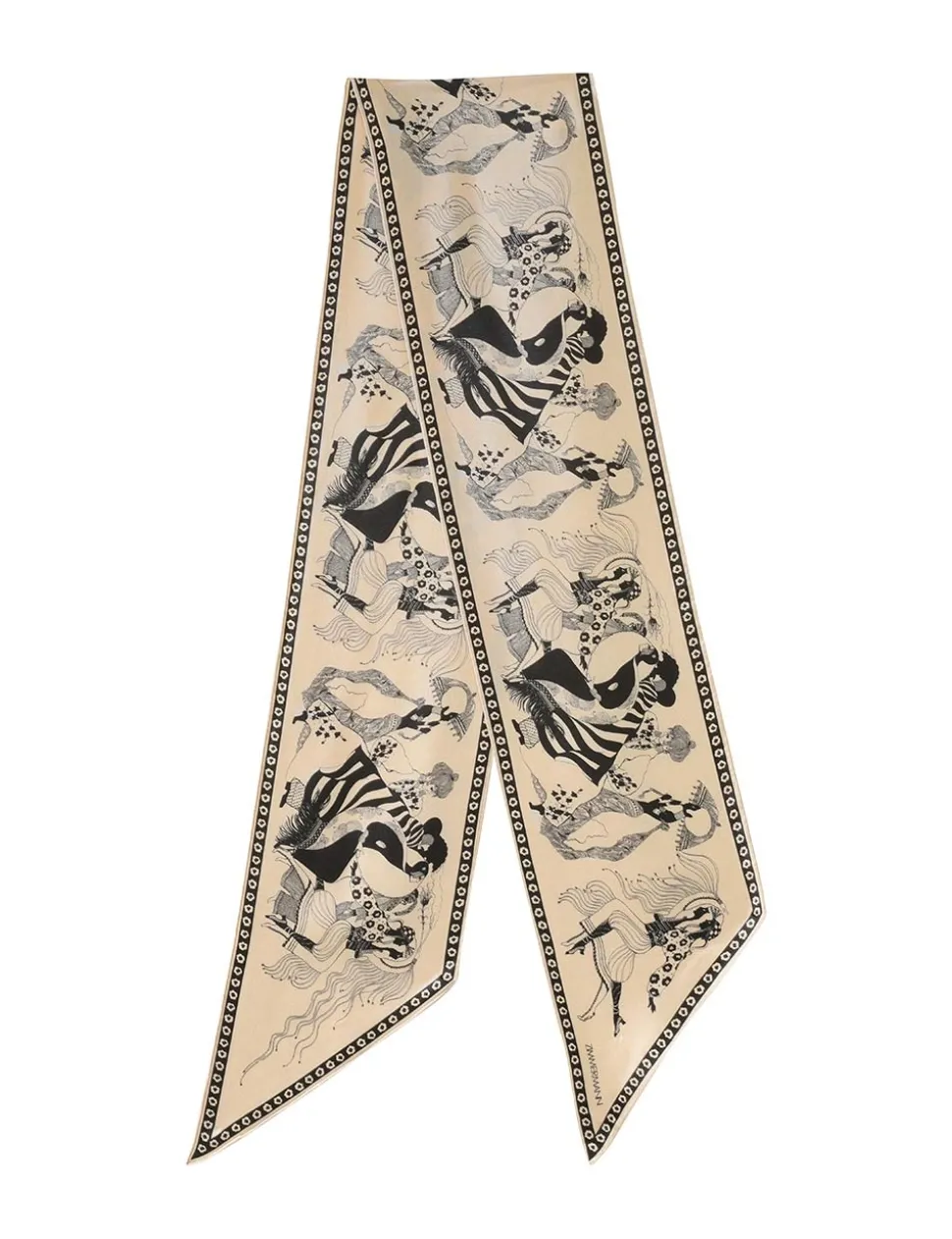 The Printed Silk Neck Scarf in Barry Otto from our Fall 2024 Collection, In Illustration. A silk neck scarf featuring a customised placement print and fine rolled hem.