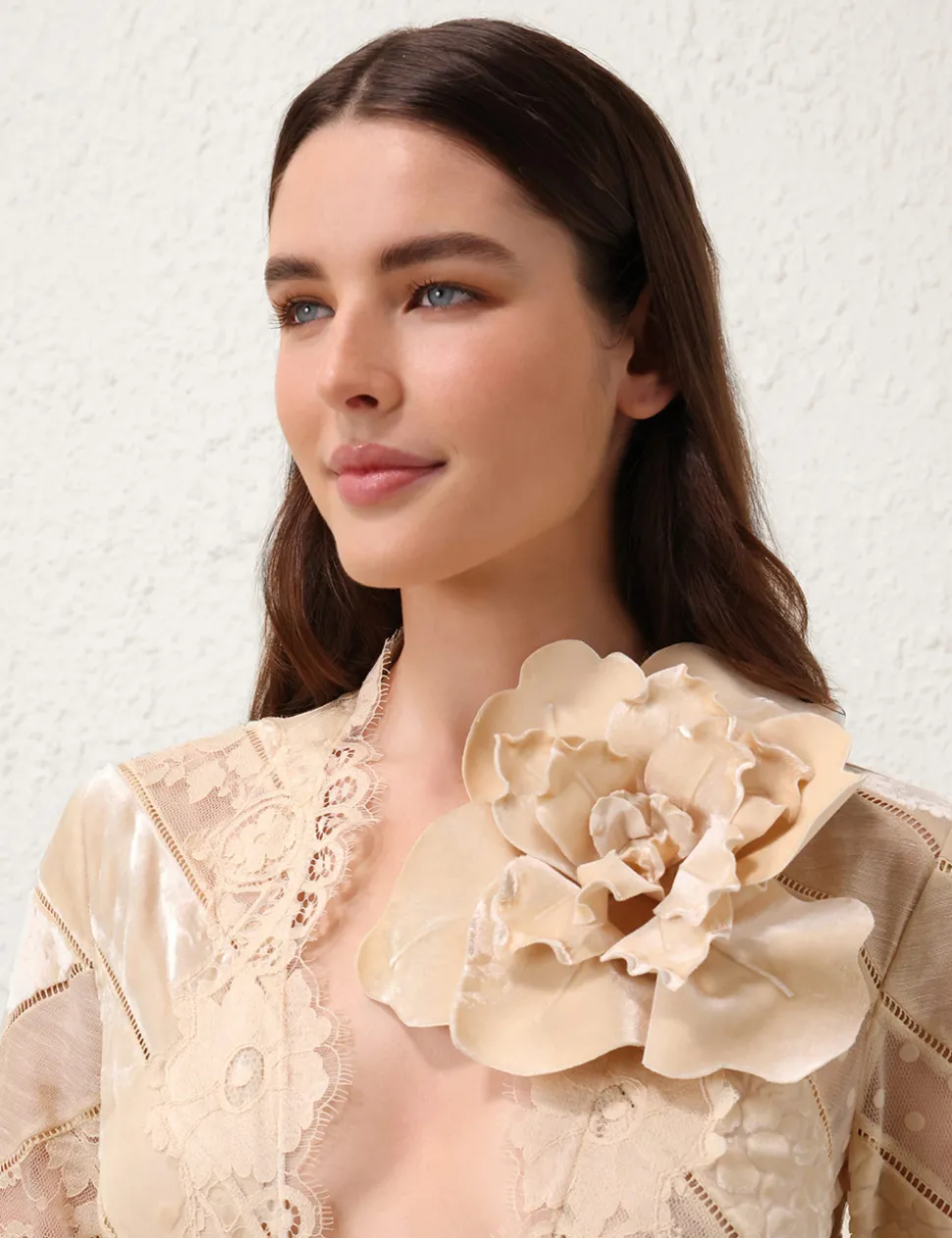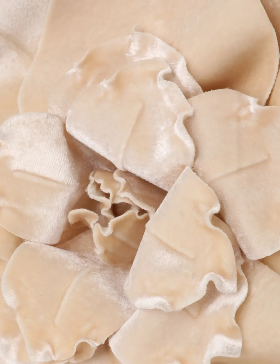 The Velvet Flower Brooch in Cream from our Fall 2024 Collection, In Illustration. A brooch constructed from hand crafted, velvet petals.