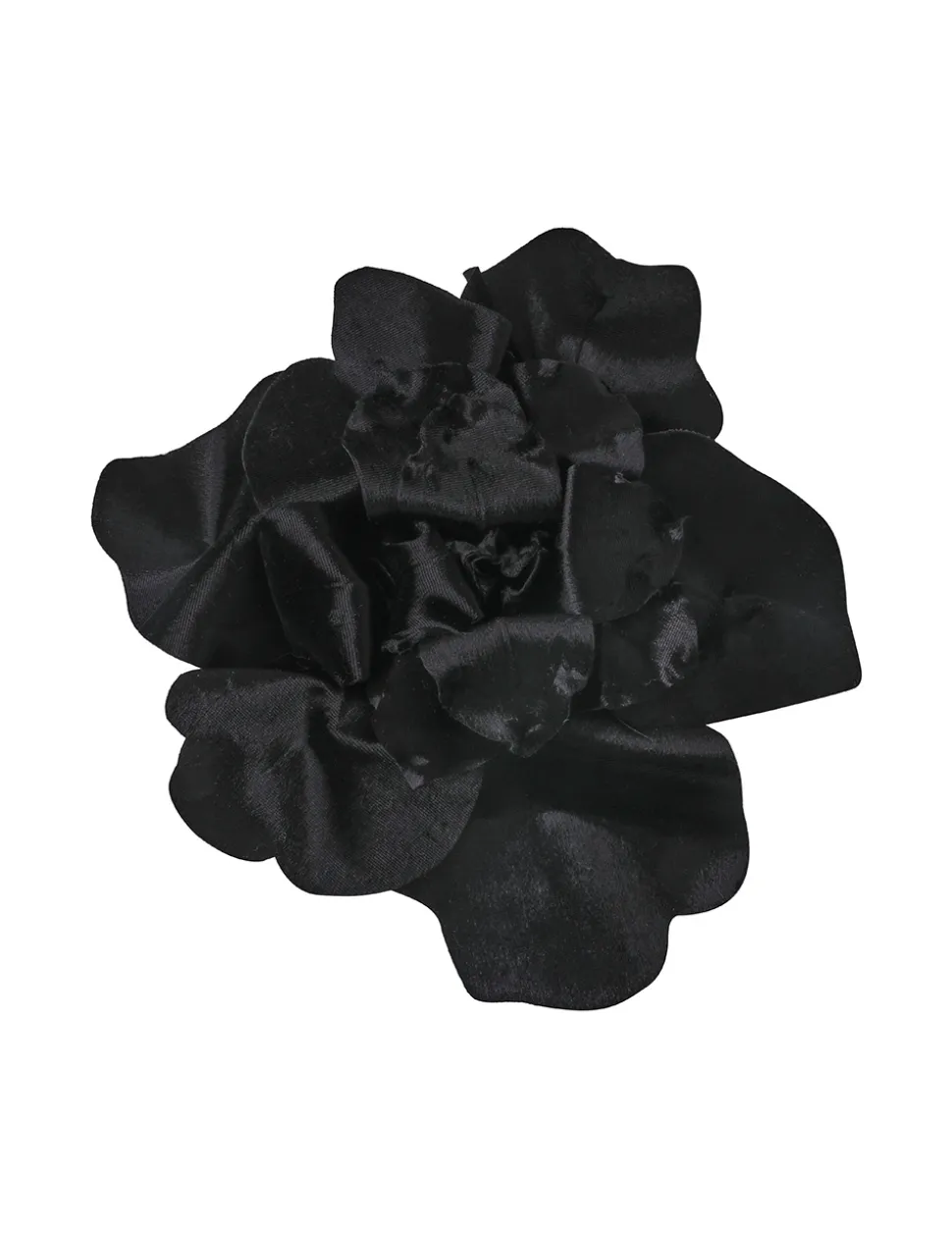 The Velvet Flower Brooch in Black from our Fall 2024 Collection, In Illustration. A brooch constructed from hand crafted, velvet petals.