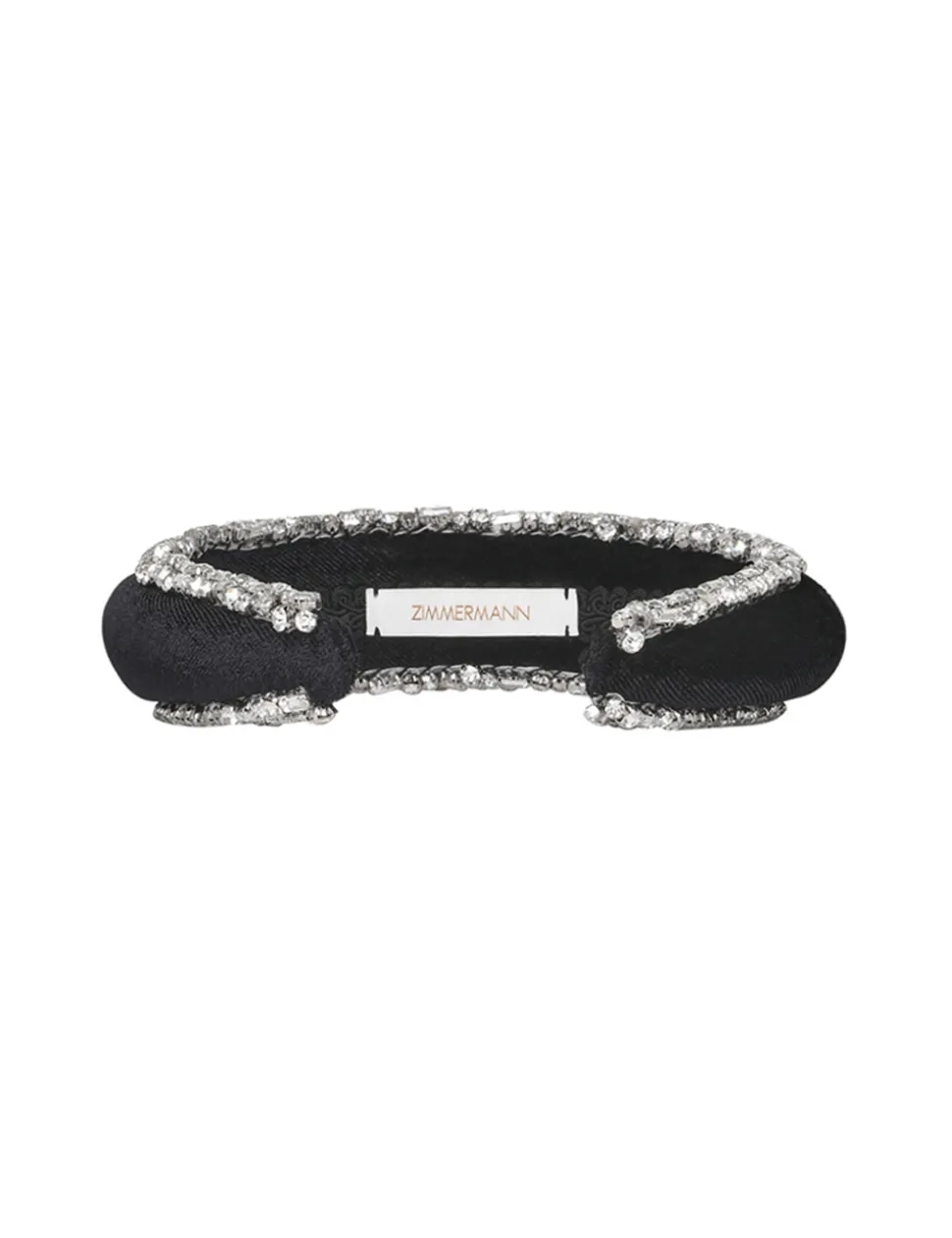 The Velvet Rhinestone Headband in Black from our Fall 2024 Collection, In Illustration. A velvet headband featuring a rhinestone trim.