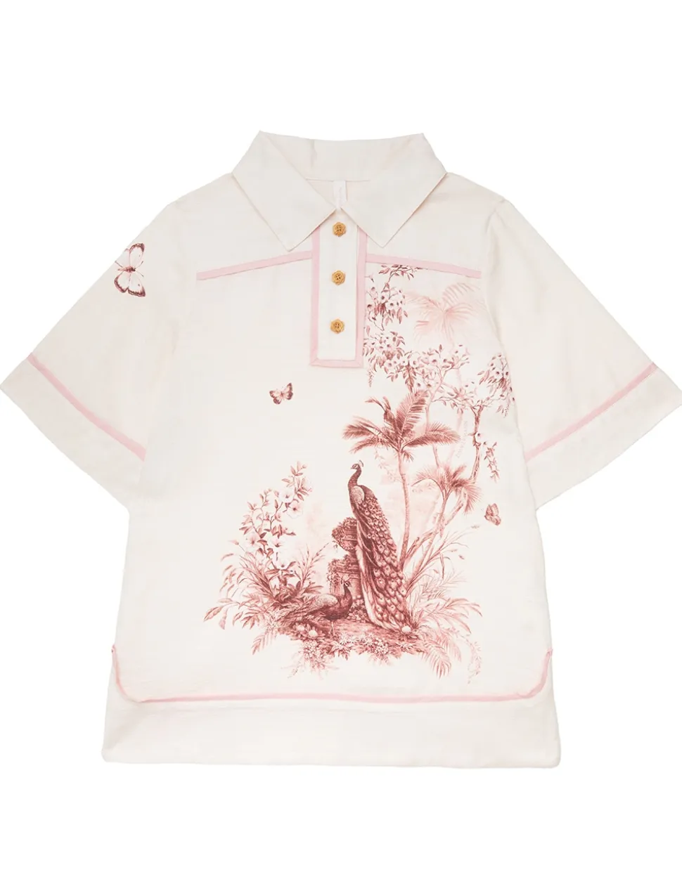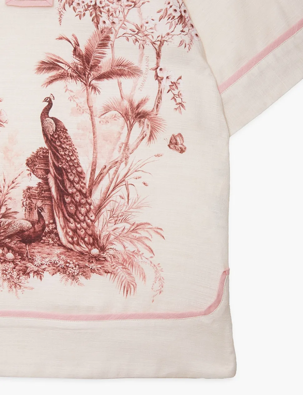 The Waverly Tunic Dress in Pink Palm from our Summer Swim 2024 Collection. A cotton tunic dress featuring a classic collar and buttons down the front opening.