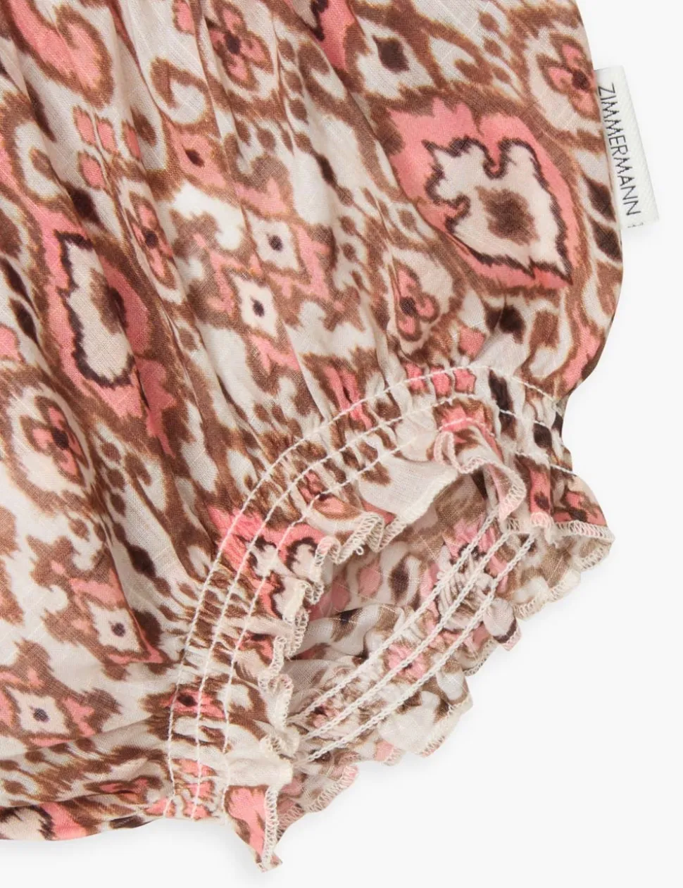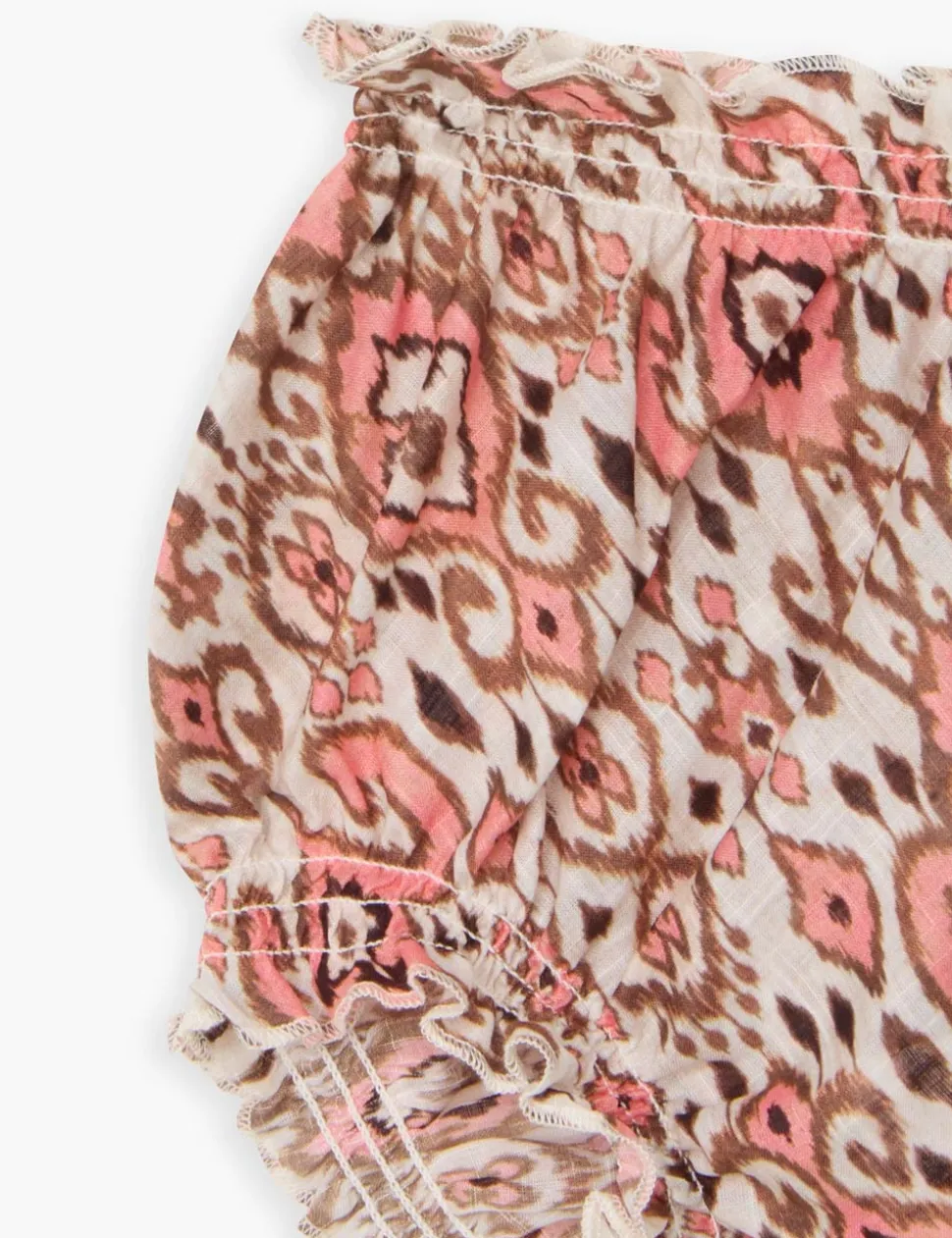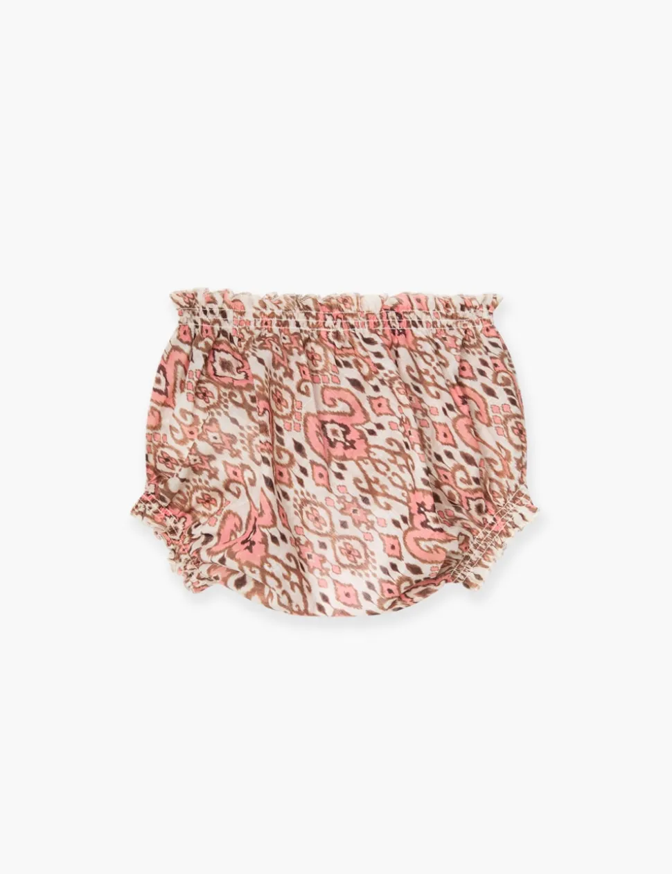 The Wylie Bloomer in Peach Ikat from our Resort Swim 2025 Kids Collection. A cotton bloomer with elastic trims and frilled edges.