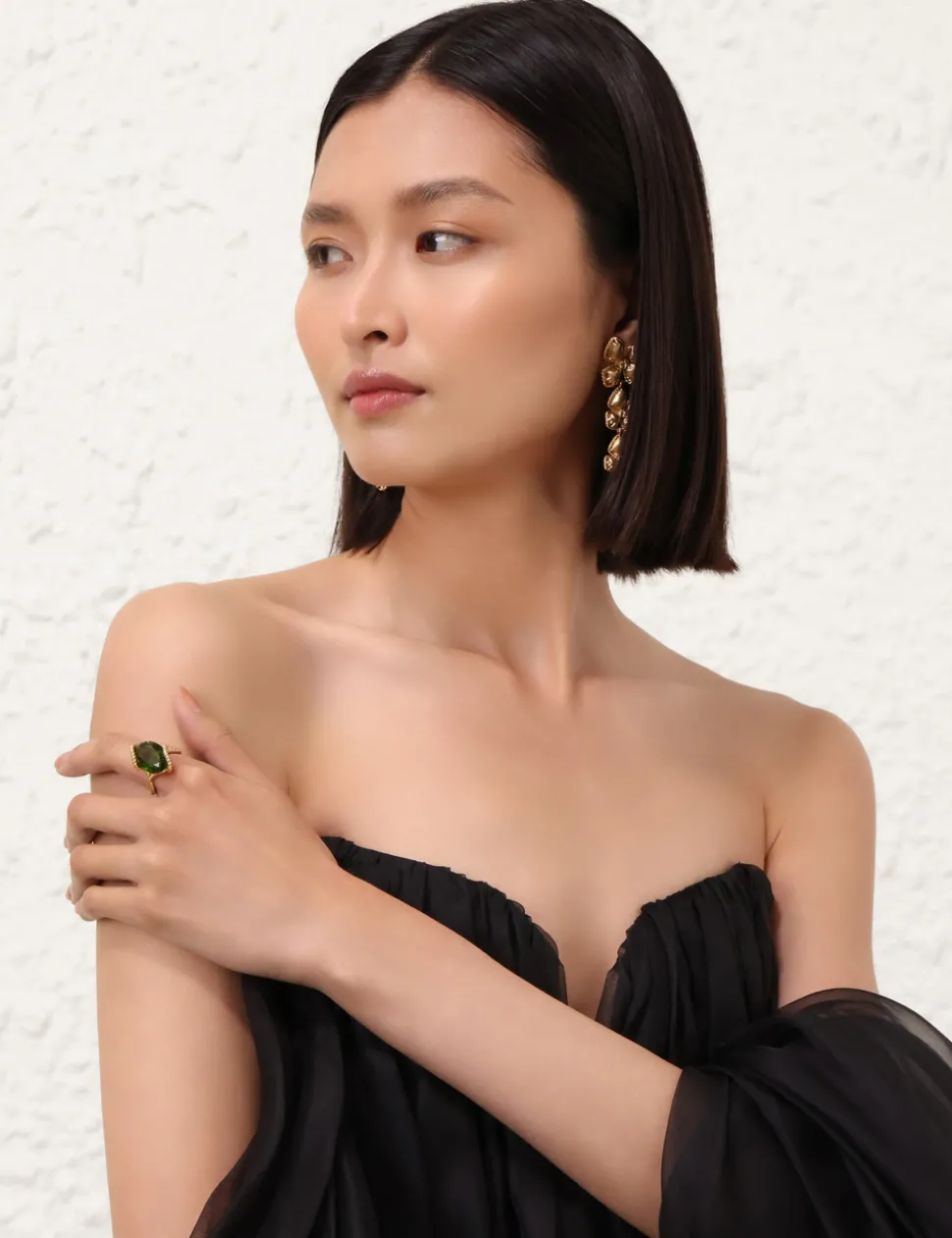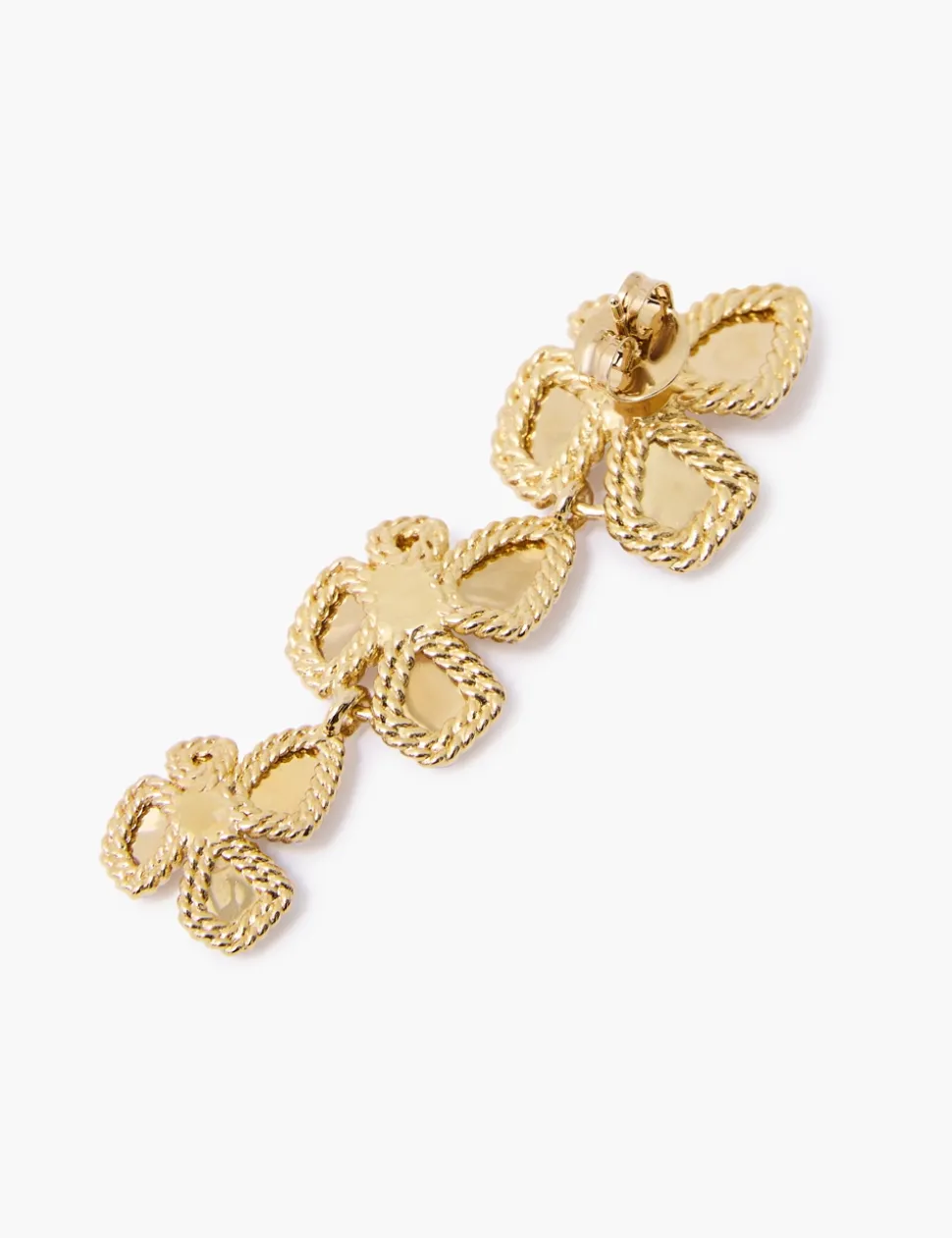 The Zimmermann Bloom Large Dangles in Gold from our Resort 2025 Collection, Crush. A large gold plated drop earring featuring stud post back.